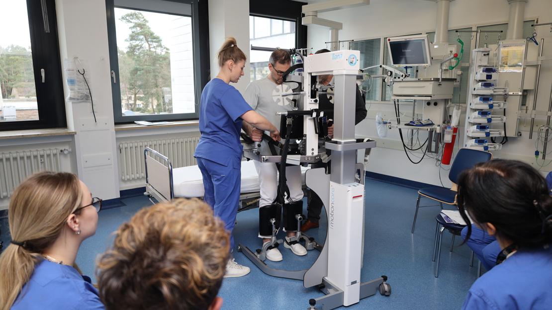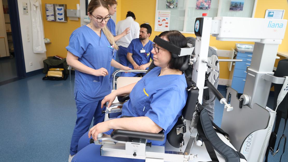 Liana erleichtert oder ermöglicht es erst, bestimmte Patienten in eine aufrechte Position zu versetzen. Ulrich Koch, Leiter der Intensivstation am Krankenhaus Nürnberg, betont die Wichtigkeit von Frühmobilisierung auf der Intensivstation.